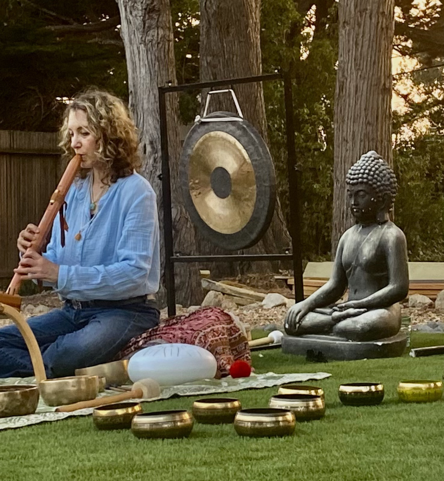 In Monterey County, she hosts individual, private and group gatherings at places such as: Carmel Sound Healing’s Sound Sanctuary, Yoga Shala by the Sea, Pebble Beach Spa, Carmel Valley Ranch, Monterey County Museum of Art, Carmel Retreat Center, Carmel Valley Athletic Club, Hacienda Carmel Valley, and more. She often co-hosts large public gatherings with other musicians, vocalists and artists to create multi-dimensional and memorable experiences outside in nature, at corporate retreats or private residences.